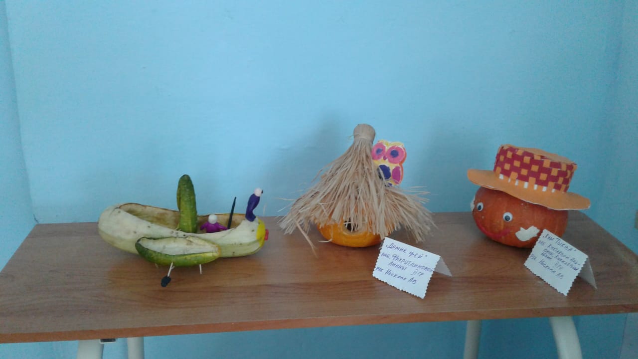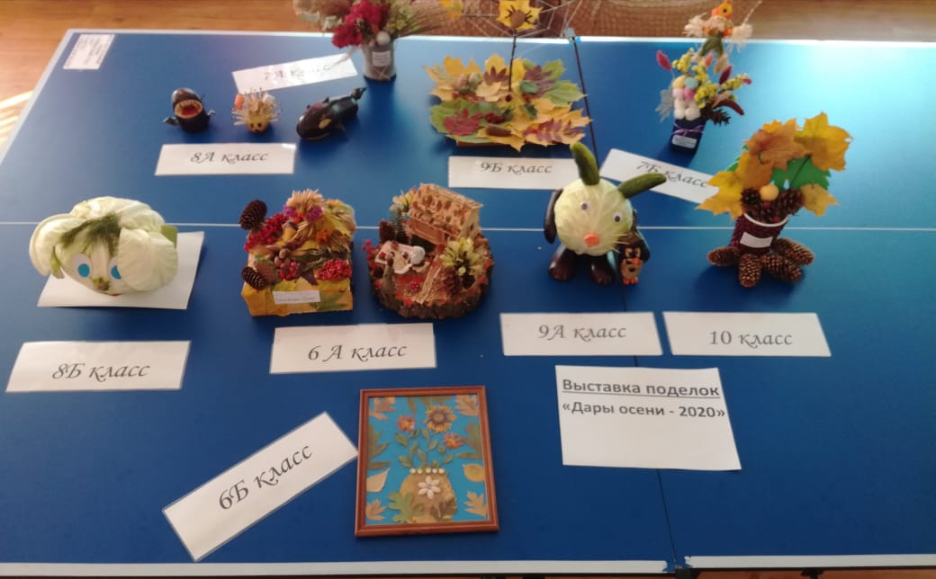 В школе прошел осенний конкурс поделок «Дары осени». Воспитанники приняли активное участие в данном мероприятии. Приятно удивил творческий подход  в создании и оформлении своих композиций. На выставке можно было наблюдать, как обычные шишки хвойных деревьев перевоплотились в яркие сказочные персонажи. Овощные культуры стали веселыми человечками, героями известных сказок. Оригинально по-осеннему были оформлены картины, фото рамочки с использованием листьев, желудей, семечек.
