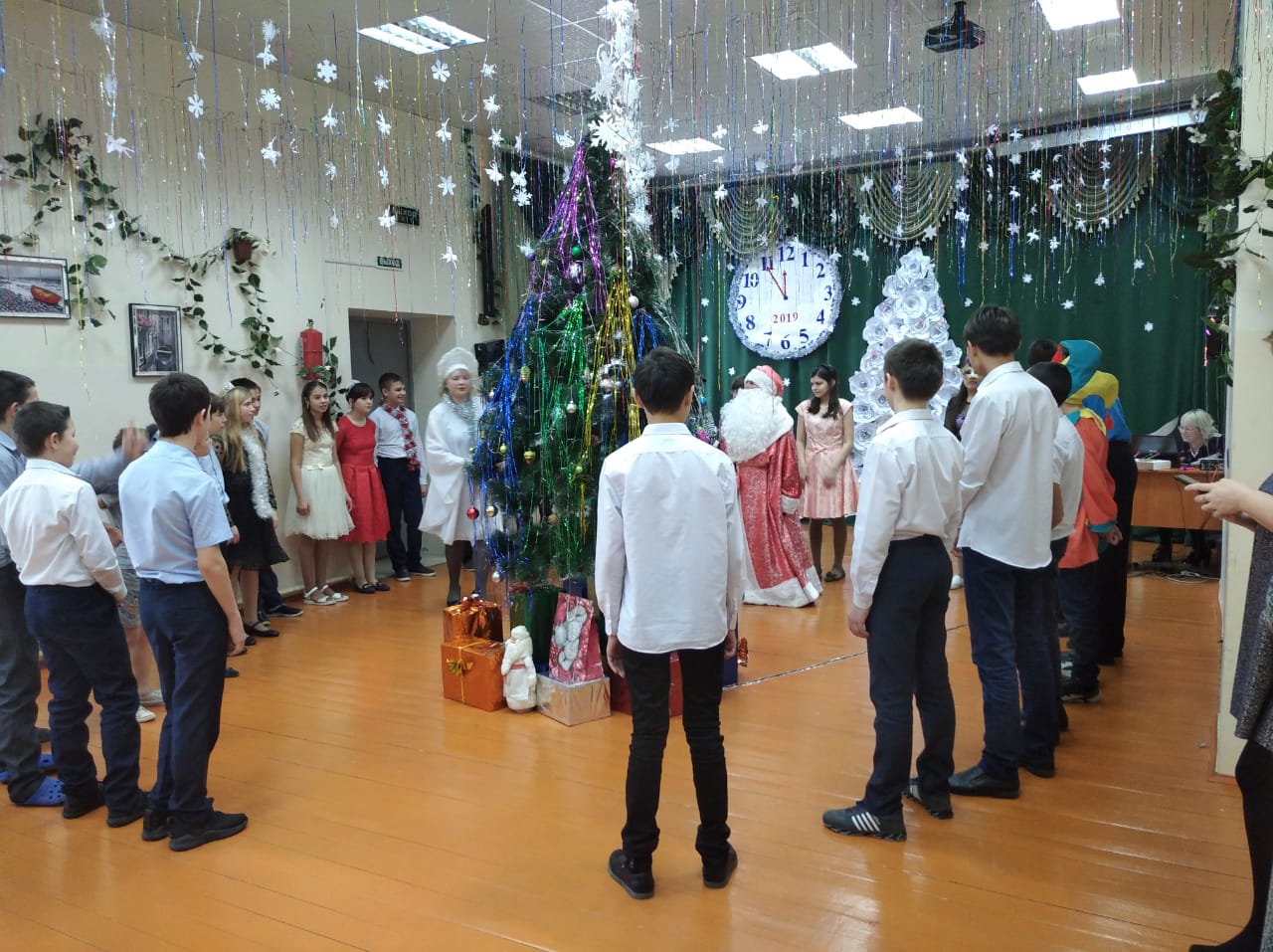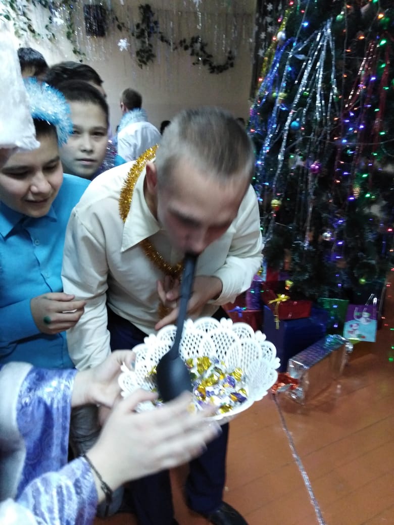 24 декабря 2019 года в  нашей школе-интернат  были организованы новогодние праздники для среднего (5-7 классы) и старшего (8-9 классы) звена,  а  так  же 25 декабря 2019 года для самых маленьких (1-4 классов).