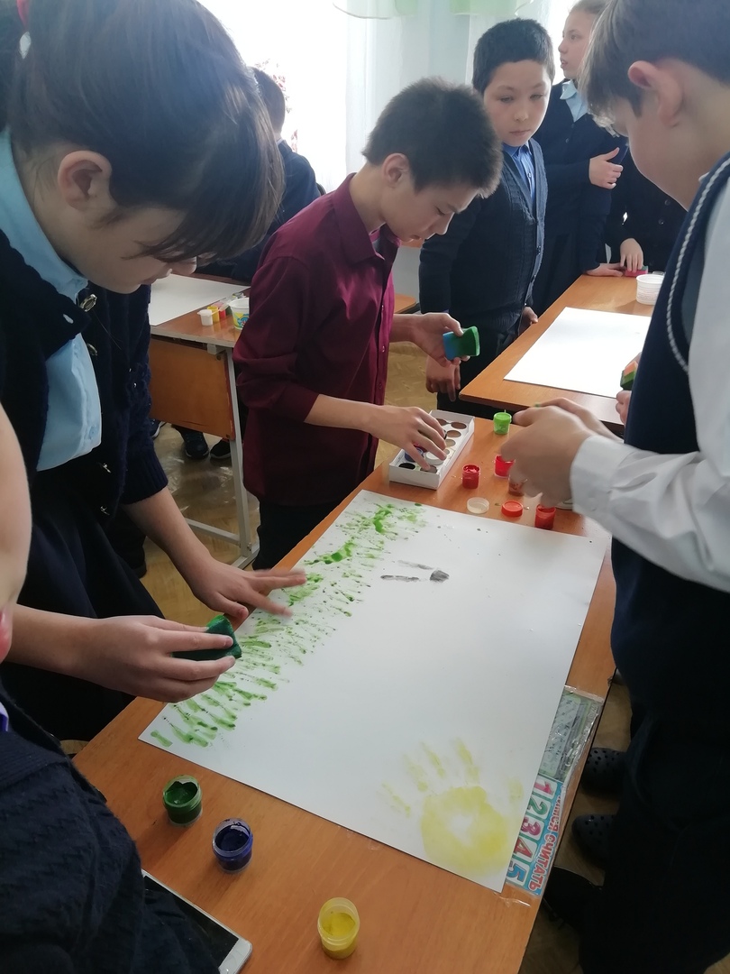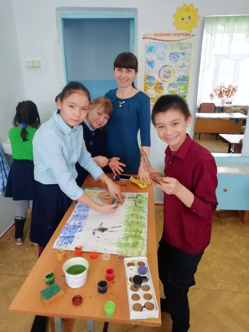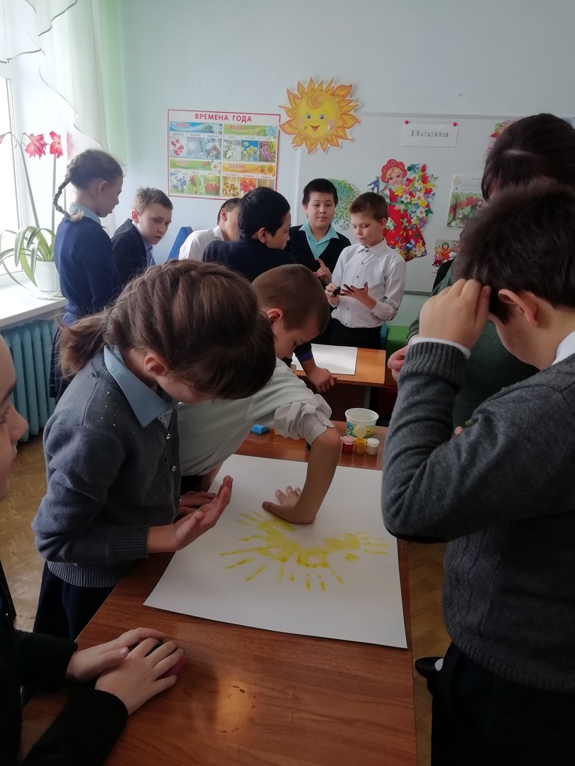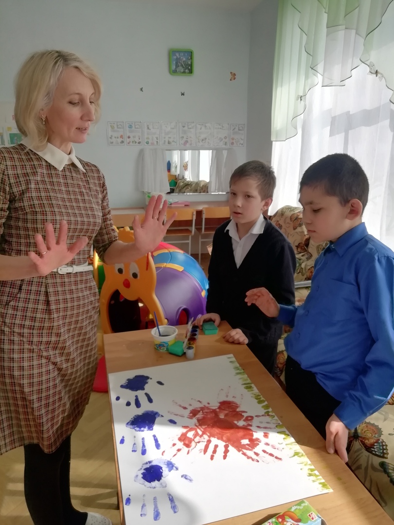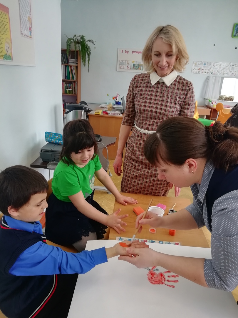 Среда объявлен днем «Арт - мастерской». Для учащихся младших классов в кабинете учителя-логопеда было проведено творческое занятие «Рисуем из ладошек». Целью было поднять настроение детям, в интересной форме развивать их творческие способности и воображение. Каждый участник должен сделать оттиск своей ладони и придумать из этой ладони рисунок. Потом делается большая общая работа. Дети развивали крупную и мелкую моторику, тактильное восприятие, глазомер, внимание. Учащимся понравилась такая форма работы, каждый смог поучаствовать. Работы получились очень красочными и яркими, и у всех было приподнятое настроение!