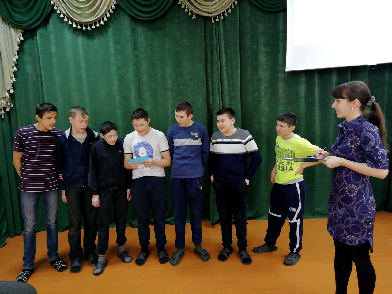 Для учащихся 5-9 классов в актовом зале были проведены психологические игры и логопедические упражнения. Во время психологических игр ребята учились отбрасывать свои негативные эмоции, мысли и чувства. Логопедические упражнения способствовали обогащению словаря и совершенствованию речи.