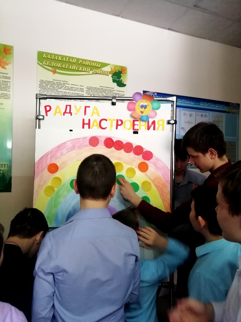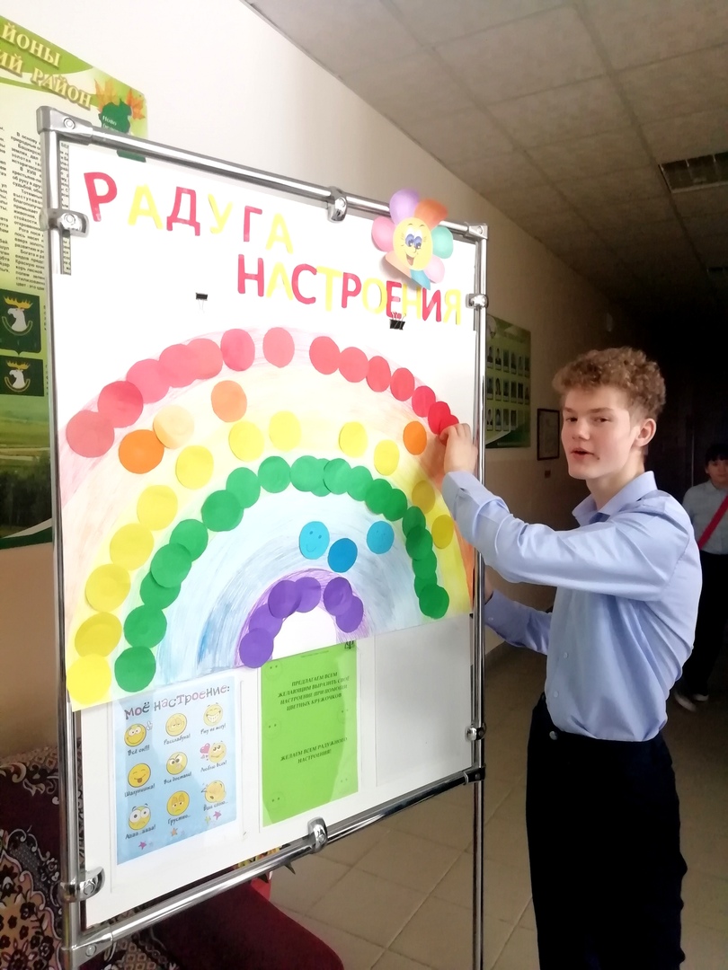 В понедельник в фойе школы была организована психологическая акция «Радуга настроения» с целью определить эмоциональное состояние всех учеников школы. Акция вызвала большой интерес среди детей. Участники акции должны были выбрать определенный цвет, соответствующий их настроению, а затем приклеить на радугу. Подсчитав количество выборов каждого цвета, специалисты сделали вывод, что у 80% участников акции преобладает хорошее настроение, а 20% - пришли в этот день с мрачным настроением. Каждый смог увидеть свое настроение наглядно.